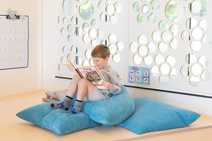 Het leeskwartier is bij ons meer dan zomaar stil lezen. Het is een doordacht en begeleid moment, afgestemd op de noden van de kinderen en opgebouwd rond drie pijlers.