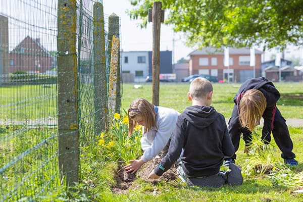 Ook ons groene schooldomein draagt bij aan het welbevinden van kinderen. Buiten spelen, samenwerken en bewegen in een open, rustige omgeving bevordert positieve relaties en vermindert spanningen.