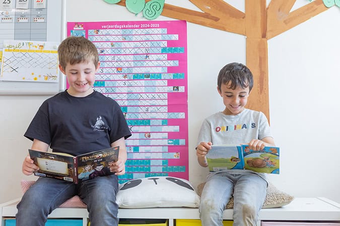 Taal speelt een centrale rol in onze school. We zetten sterk in op taalgericht onderwijs en versterken elke dag de communicatievaardigheden van onze leerlingen. Zo leren kinderen zich vlot uitdrukken, luisteren naar elkaar en met vertrouwen hun plaats innemen in de klas en daarbuiten.